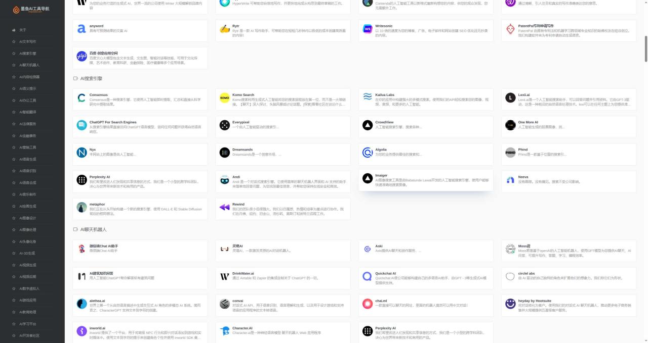 墨鱼AI导航系统,涵盖国内外500 AI工具集合精选网站,覆盖AI写作工具、AI图像工具、AI视频工具、AI音频工具、AI编程工具、AI音乐工具、AI设计工具、AI对话工具等AI工具全类,以及AI学习开发的常用网站、框架和模型