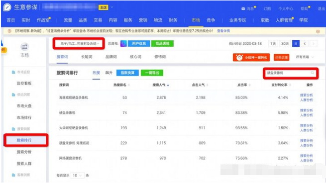 路径:千牛卖家工作台-数据中心-生意参谋-市场-搜索排行。