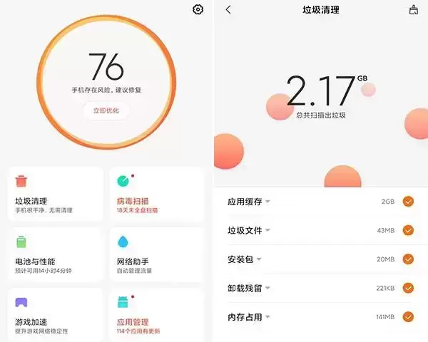 1、 小米手机缓存垃圾清理