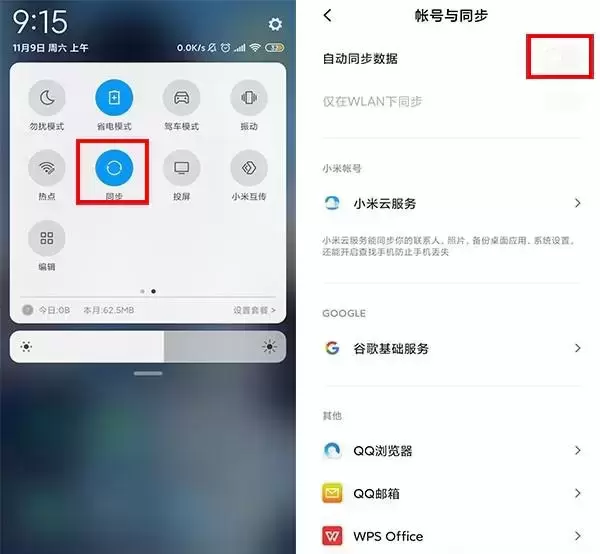 2、 小米手机自动同步