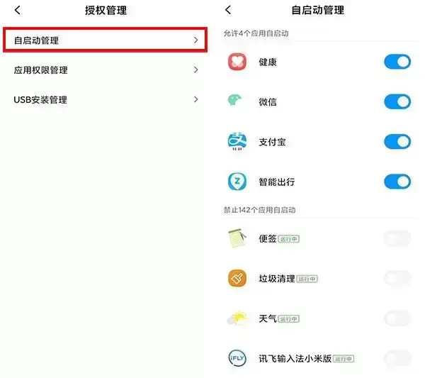 3、 小米手机应用自启动