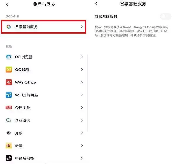 4、 小米手机内谷歌服务