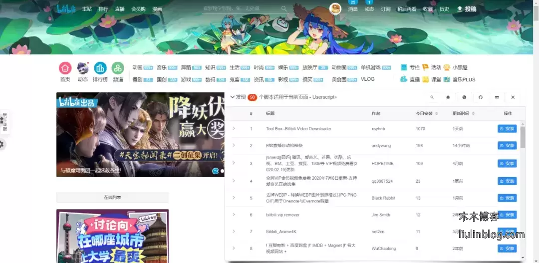 然后就可以搜索想要的脚本了,之后点击安装就可以了。安装好后打开相应的网站会自动启用。