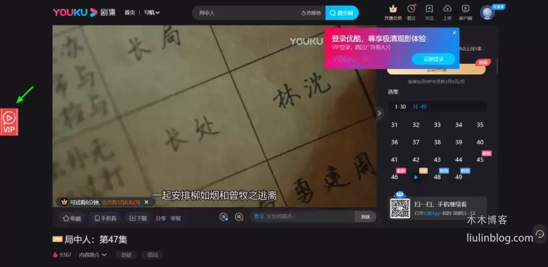 看一下效果,打开视频网站的VIP剧,点击左边的VIP按钮。