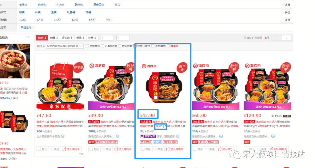 这是海底捞的自煮火锅,我们再来看看京东上面的价格。