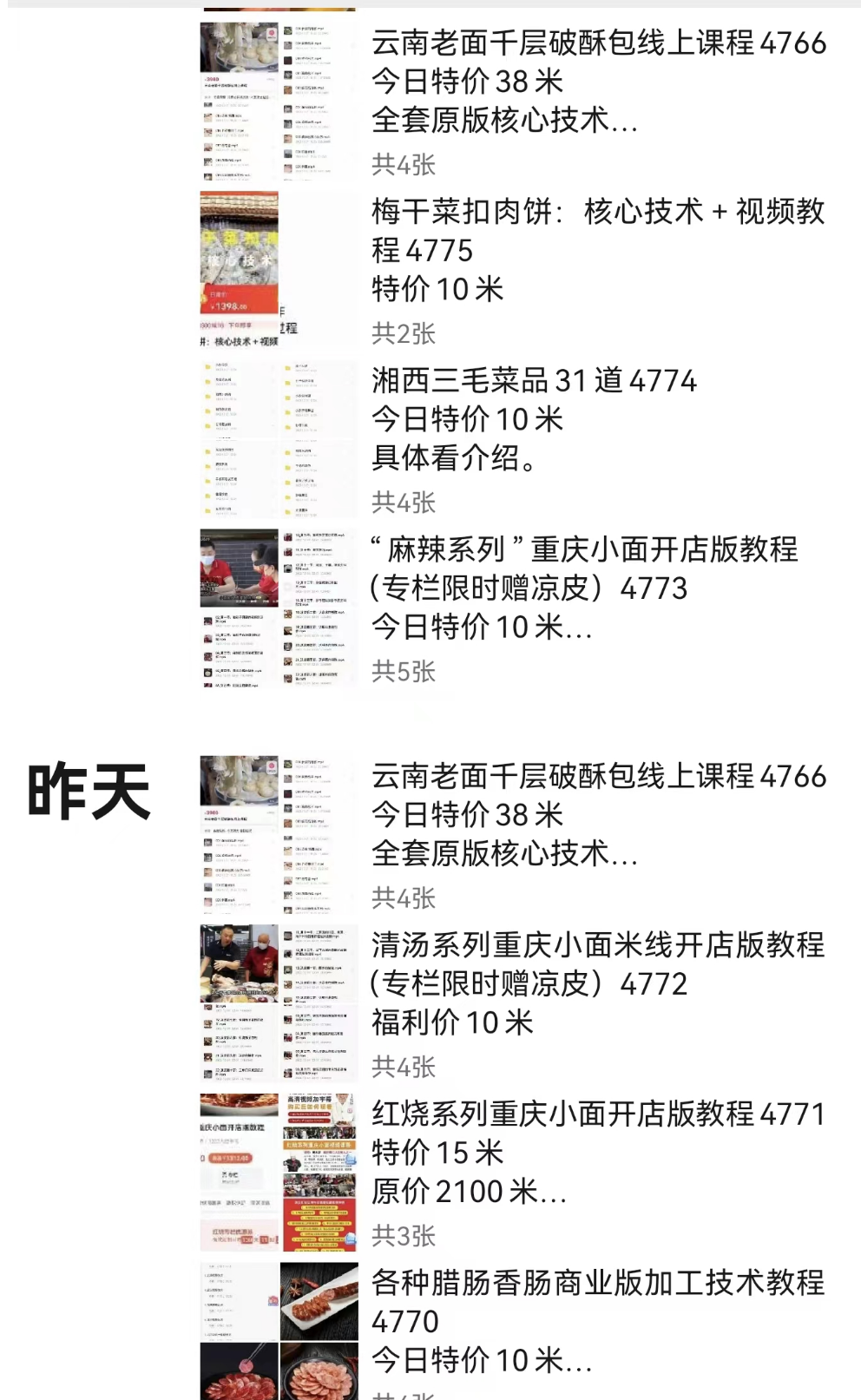 要知道这个玩法,很多人直接过来要美食资料,一份多少钱,直接卖,我朋友圈有人单独搞这个事情,就是各种美食教程,多少钱一份,也不贵,其实很多资料网上都有,但是总觉得别人单独卖的是最好的。