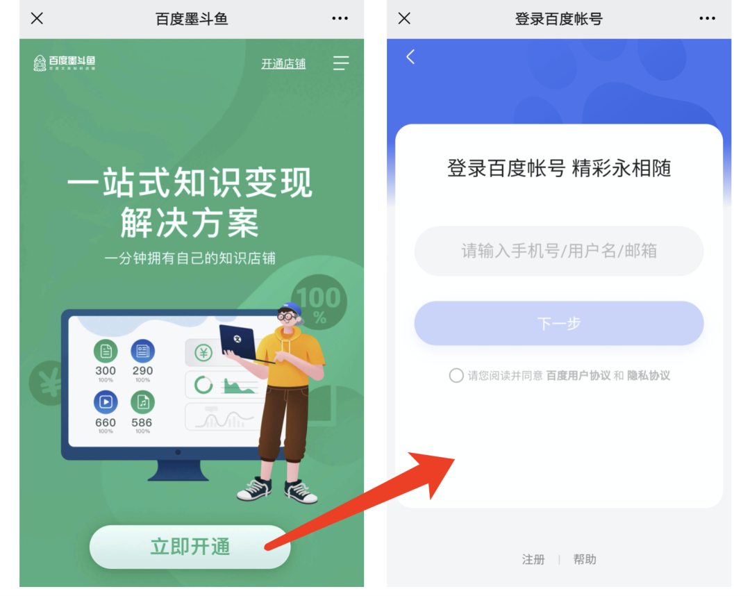怎么操作呢?一、注册百度墨斗鱼知识店铺这个人操作的答题平台是 百度系平台:【百度墨斗鱼知识店铺】,它是百度旗下的产品,没有任何费用,只要坚持就一定能有收益,小伙伴可以放心做。打开微信,点击【百度墨斗鱼知识店铺】进入,如图所示: