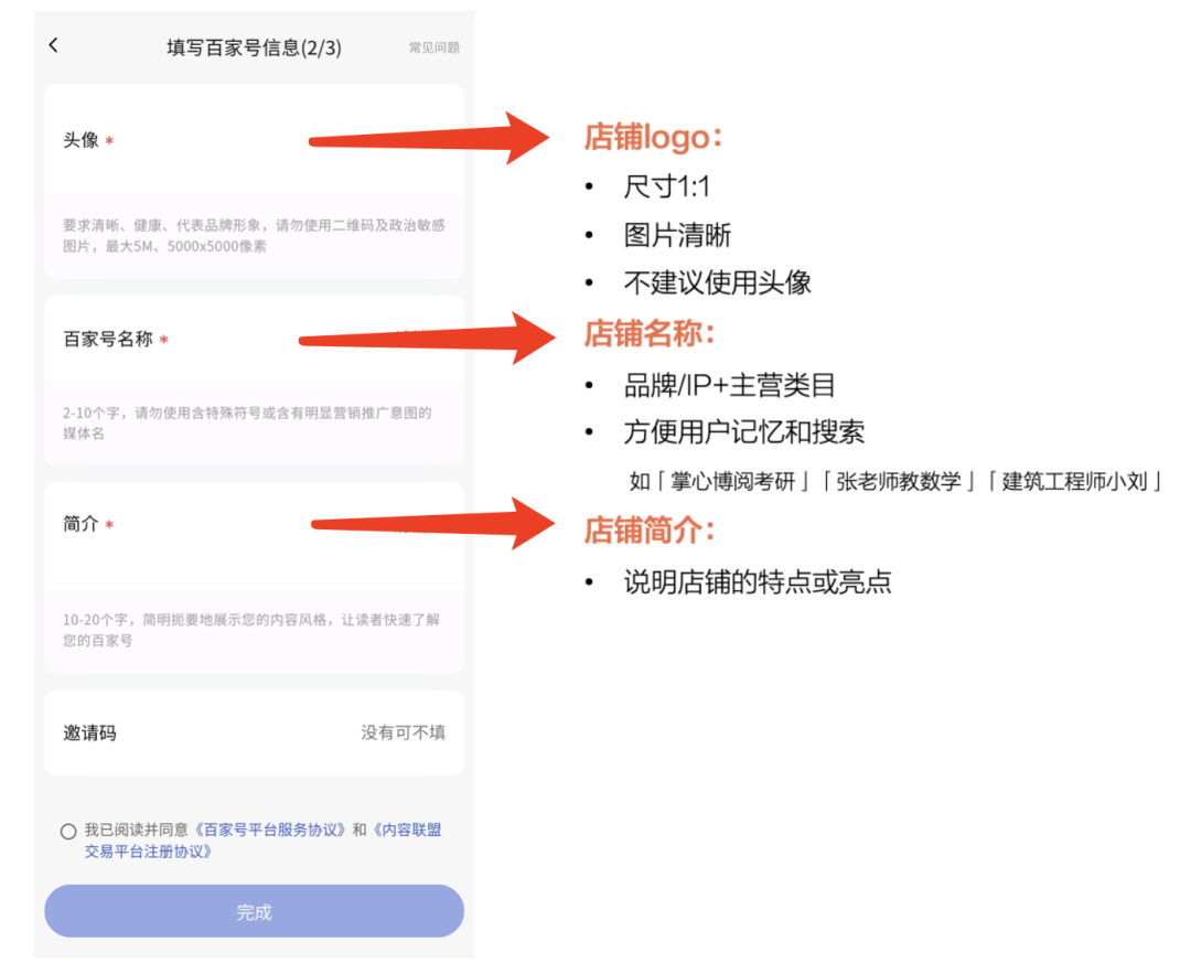 接下来需要填写店铺信息,请重视店铺logo、名称和简介的规范性(店名不建议使用没有实际意义的数字或英文)。