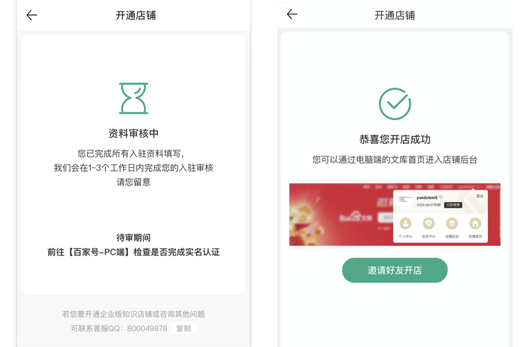 机构类账号需要提交「营业执照影印件」「企业名称」和「营业执照注册号」提交后,1-3个工作日将完成审核。审核通过后,你就拥有自己的知识店铺啦!