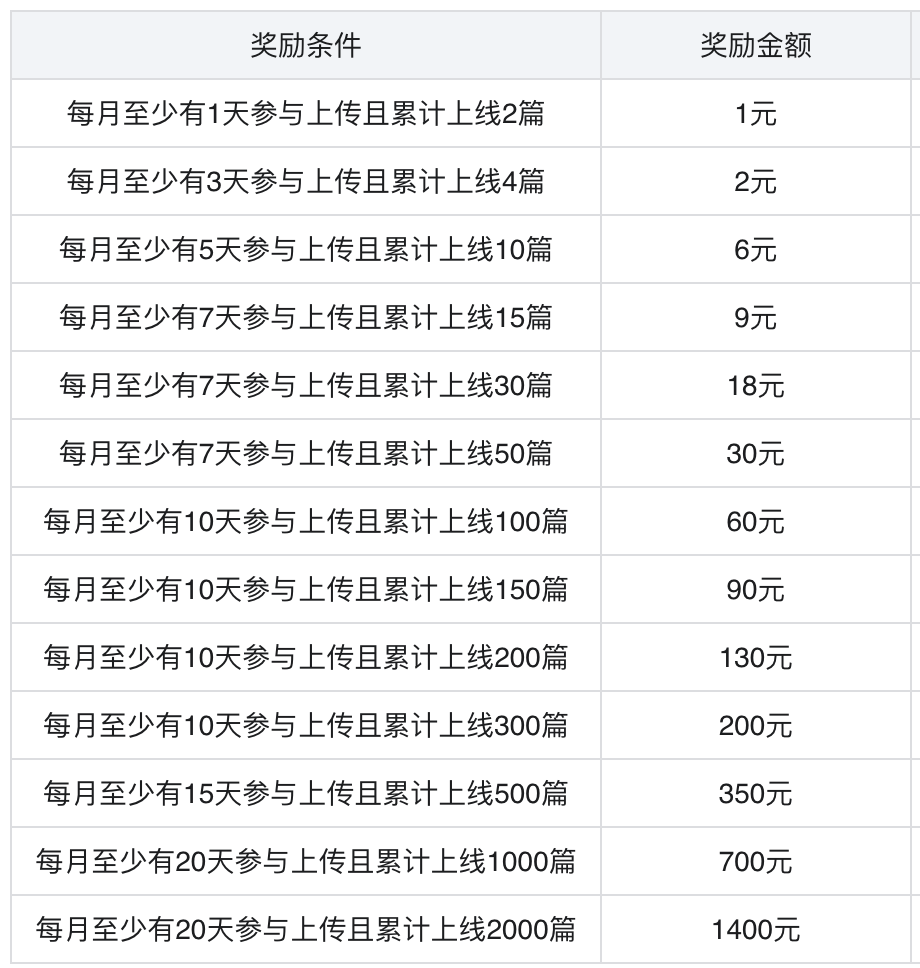 这2块多只是我们一次性得到的收入,当你本月上传的天数和上线文档数达到一定的量级,将额外获得一笔阶梯激励收入。