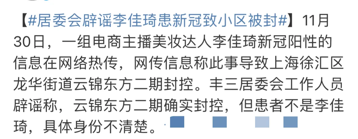 热搜,李佳琦患新冠致小区被封;谣言大概就是这么来的;