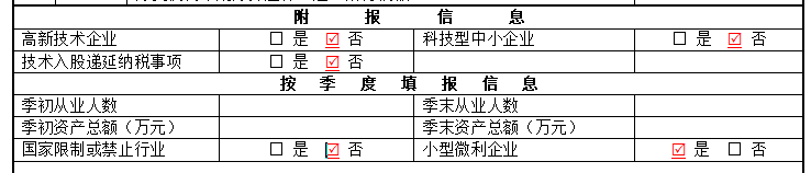 附报信息均为必填项,不同的企业性质会影响到第12行的优惠政策选择。