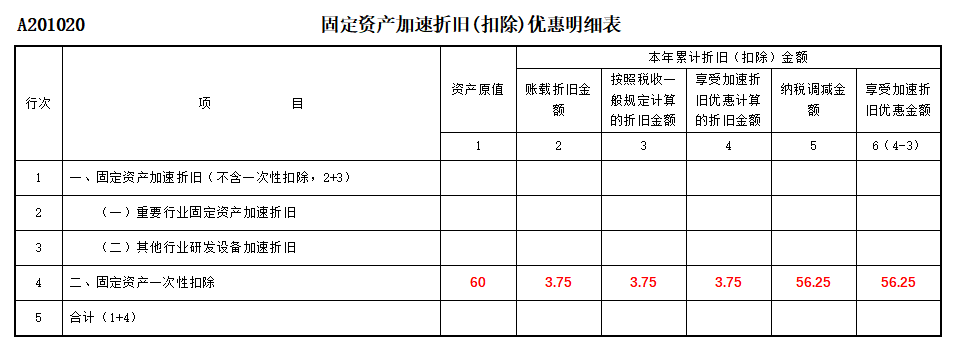 注意:不能因为税务享受一次性扣除,就不确认固定资产,或者确认固定资产后就将累计折旧一次性全部计提。会计分录如下: