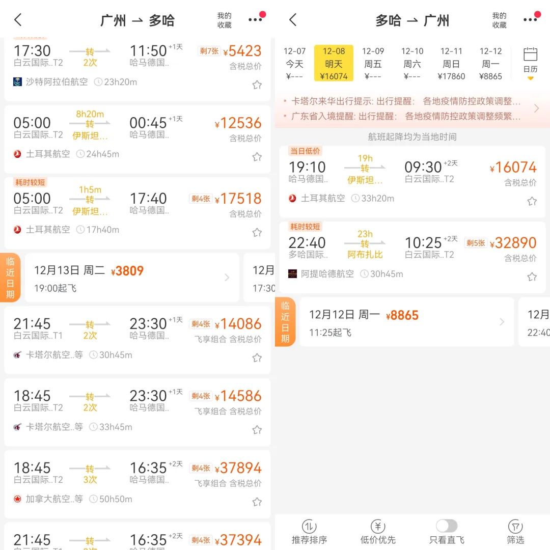 作为“史上最贵世界杯”,去卡塔尔看一趟世界杯开销不低:以广州出发为例,往返卡塔尔多哈的机票价格在20000—50000元,最便宜的球迷村帐篷和集装箱房一天价格也在600—1500元左右。5天的交通和住宿,就需要花费至少3万元。