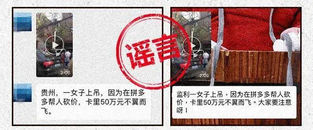 拼多多表示,一年前的视频被别有用心的人用拼多多议价等文字编造了湖北、贵州等地女性因议价被骗自杀的谣言,引起消费者恐慌。