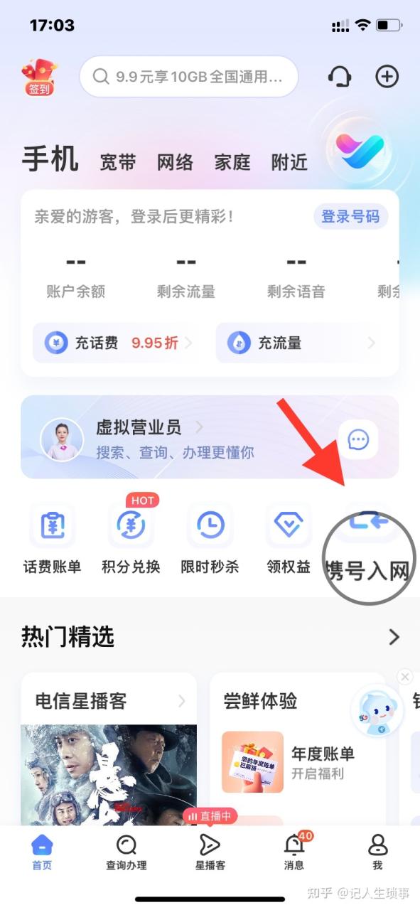 第三步:符合且已经准备好了,就下载一个电信营业厅,然后不需要登陆的状态,你可以在:电信手机营业厅——主页手机栏目——携号入网——填写相关信息——等待短信通知——卡送到——输入激活码——快递员帮忙激活——之后两小时内就可以使用了