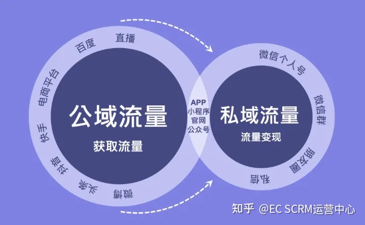 看起来客户从流浪于企业视角的公共外部区域到内部客户资源管理区域,叫做企业的私域流量。