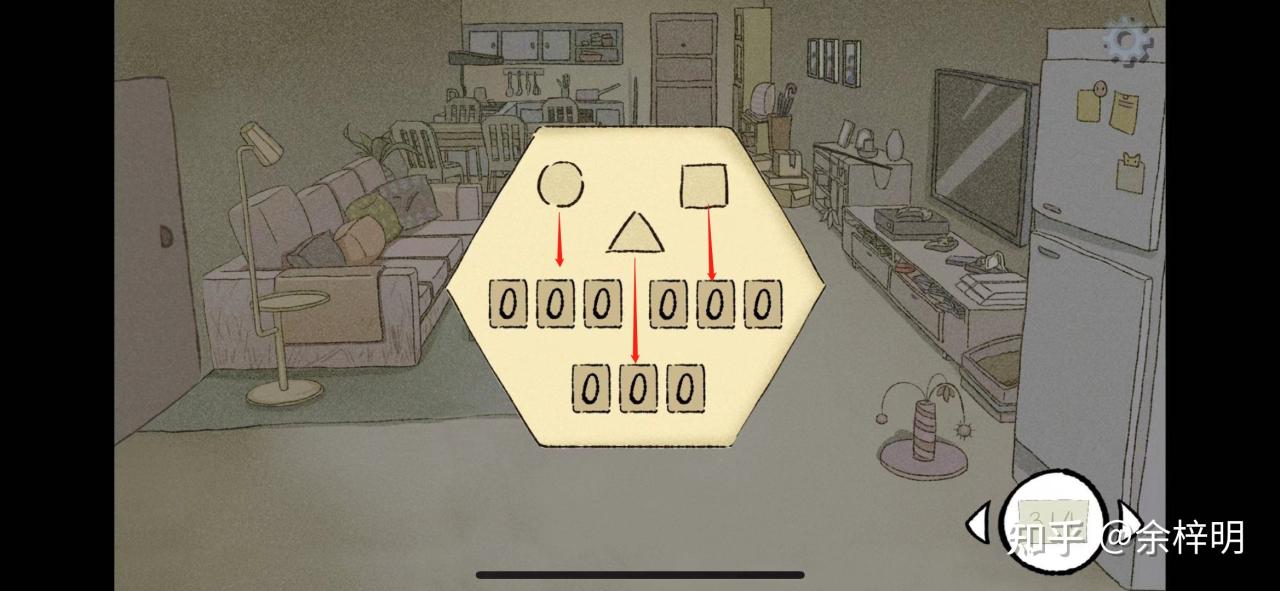 5、前往客厅打开密码箱,圆形是584 三角形是201 方形是314