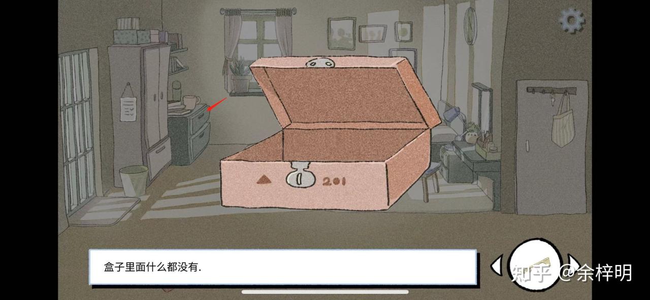 第二个密码在房间的柜子上,点击后,会发现有个密码盒,上面有个三角形 201,就是密码了