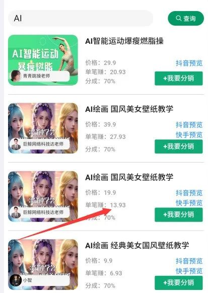 分销市场搜“AI”,单价太高卖不动,19.9正好,单笔利润14。