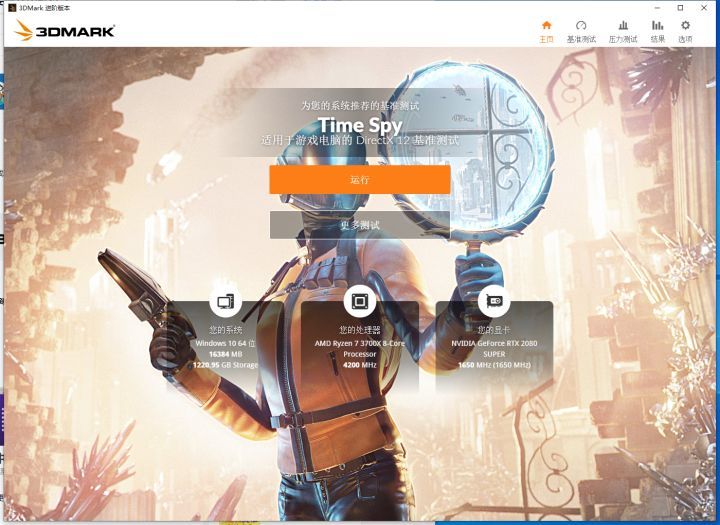 下载要测试的项目,点击运行,等几分钟就可以测试成功,一般最常用的就是Time Spy、Fire Strike Extreme
