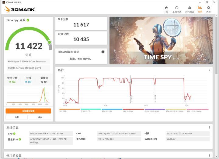 - TIME Spy:测试显卡在DX12环境 2K分辨率的性能