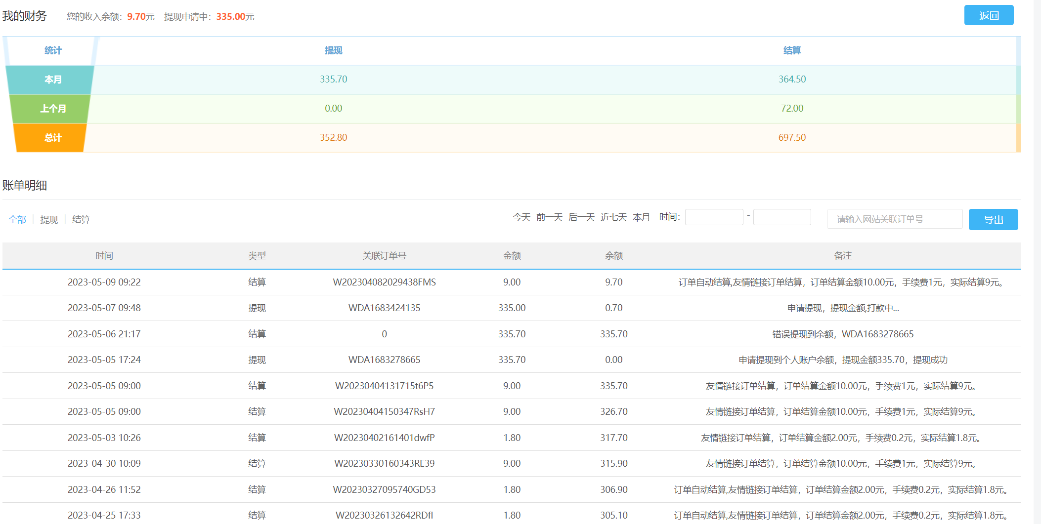 下面是建站7个月以来,在第三方网站以销售友链赚来的部份收入: