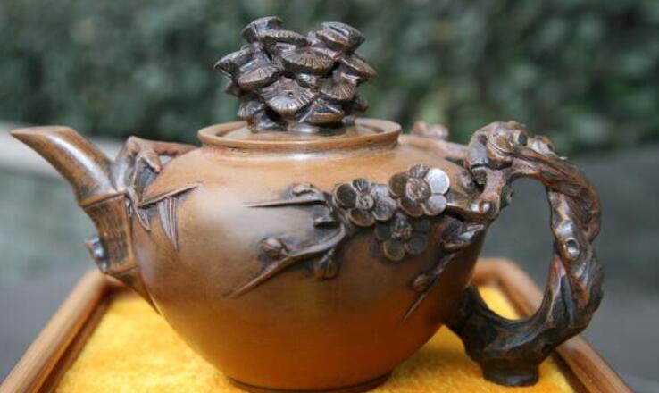 10.固镇石茶壶由灵璧县出产的岩石(又名八音石)和檀溪特产的彩石雕刻而成。其器形憨厚,大小结构与紫砂壶无异,造型独特,做工精致,器壁薄如墙,敲击声加锅声,干净如镜,堪称“壶中极品”。