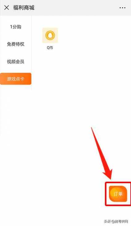 1、关注“要携号转网”微信公众号,打开“福利商城”栏目,选择“游戏点卡”中“Q币”。