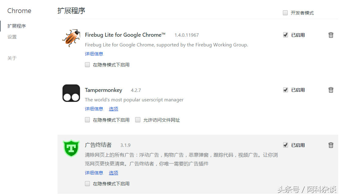 另外也可以百度搜索插件,一般第一个就是了,下载好之后,解压文件。然后打开Chrome扩展程序,将下载好的插件拖动到扩展程序。勾选已启用,打开视频网站测试。