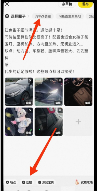在闲鱼上找到刚才的发帖入口,文案图片直接粘贴,发布的时候一定要选上圈子和话题,否则没有奖励