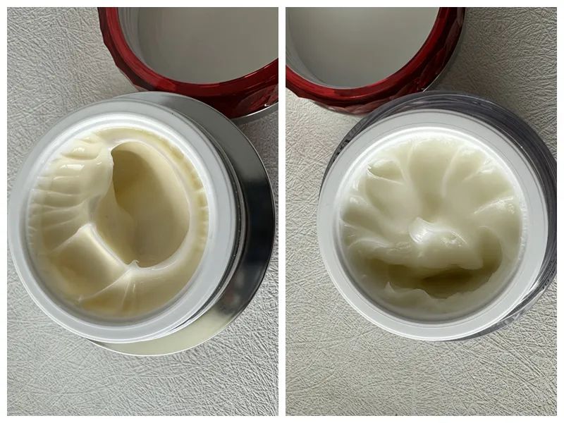 左边是滋润版,右边是轻盈版,滋润版看起来像是黄油质地。