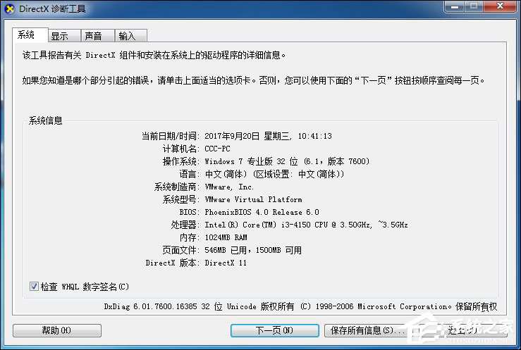 3、按下回车键打开“Directx诊断工具”。