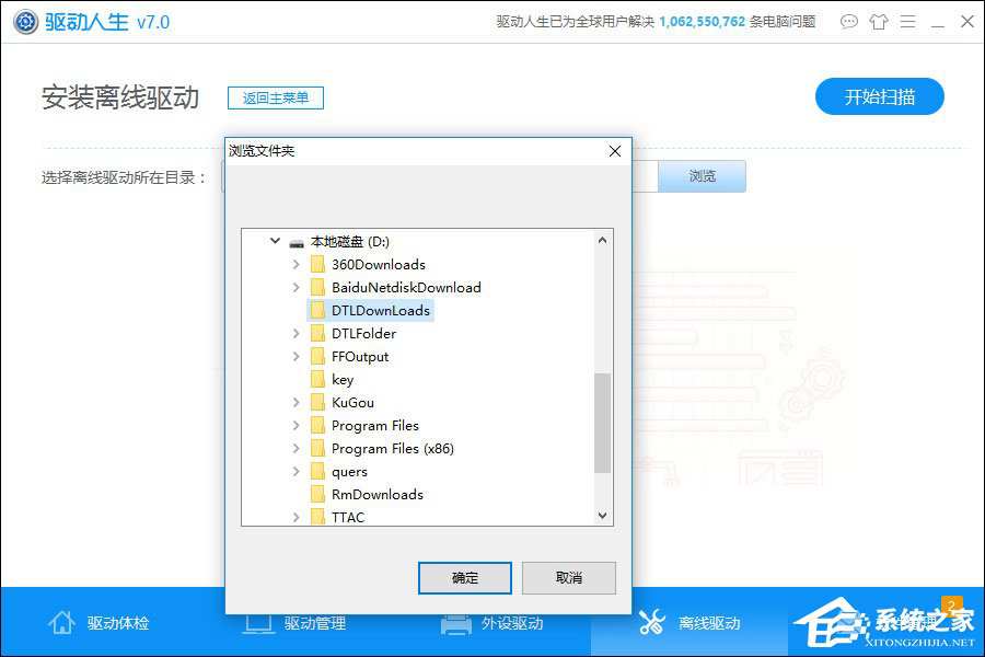 (2)在界面上点击浏览,再找到官方下载的驱动的位置,“确定”→“扫描”→选中驱动→“下一步”,“安装驱动”。