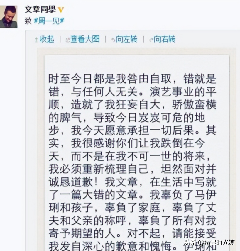或许她以为文章会护着她吧,可是现实就是那么的残酷,文章不仅没有管她,反而发布一则“小作文”承认自己出轨,并且承认错误,一副会好好悔过的样子。
