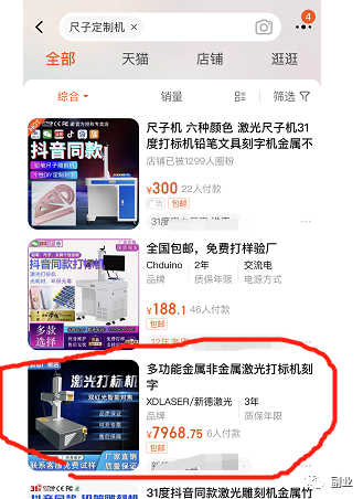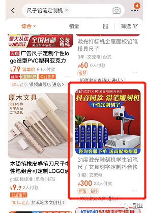 做这个副业,有伙伴会说,门槛应该很高吧,毕竟是现场定制现场做!其实不然,在某宝上,尺子定制和铅笔定制机,小型的几百到一千左右不等,利用的就是激光刻字原理!