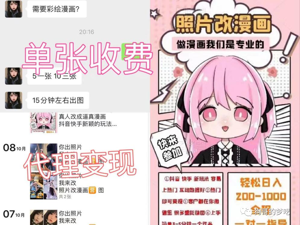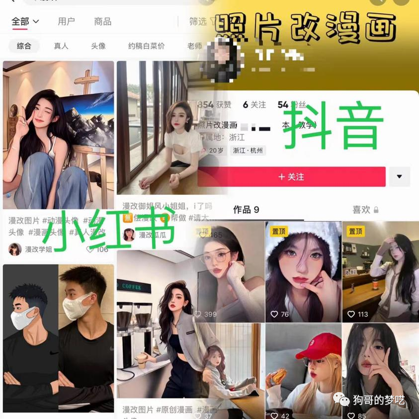 就是把照片改成漫画版本,通过照片和漫画的对比发布到公域平台,然后通过文案引流到私域,卖照片或代理。