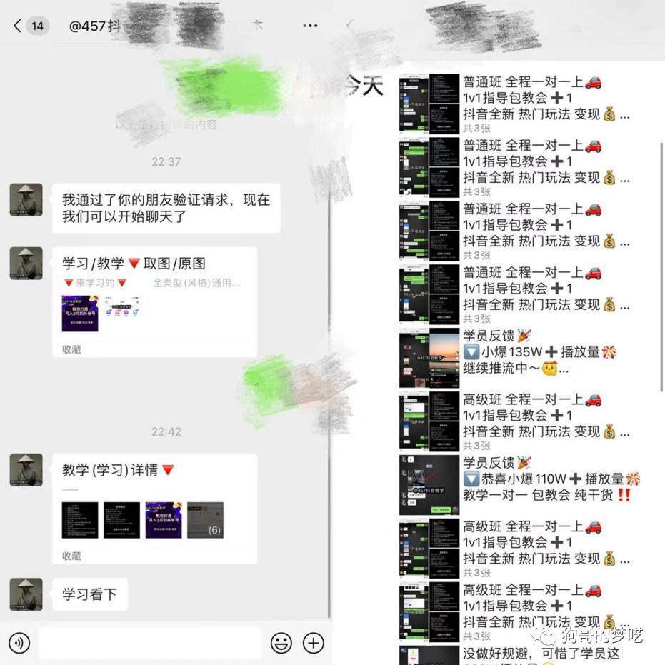 关注完了以后,一般在简介下方都会留下一些联系方式的痕迹,顺着就能找到本人,加上微信之后,你就能看到他的整套变现动作。