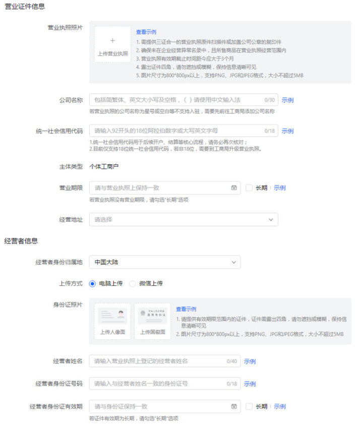 注意:个人身份证是不可以申请小店入驻的,一定要营业执照才能申请。