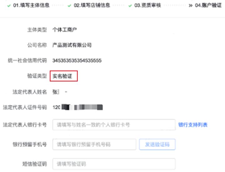 个体工商户默认实名认证,企业支持实名认证与打款认证二选一,注意:若经营者/法定代表人的身份归属地为非大陆时,必须通过打款认证的流程来进行账户验证。