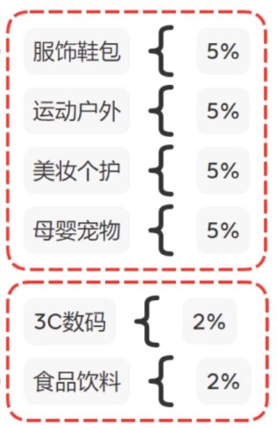 什么是信息技术服务费呢?通俗来说就是平台的扣点,所有在抖音小店成交的订单,平台都会收取信息技术服务费,根据类目的不同,收取的标准也不同,下面是常见类目的扣点。
