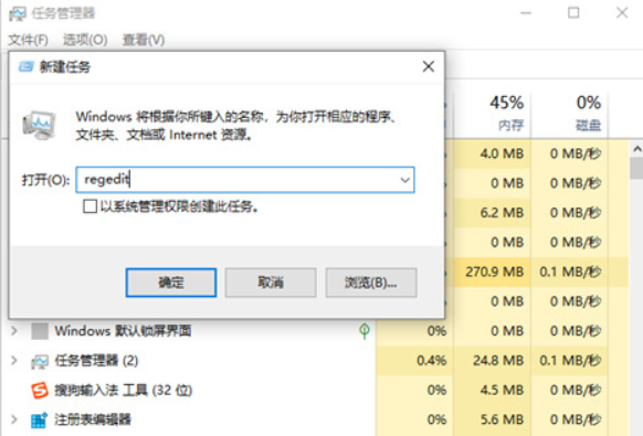 2、之后输入regedit,点击确定即可打开注册表编辑器。