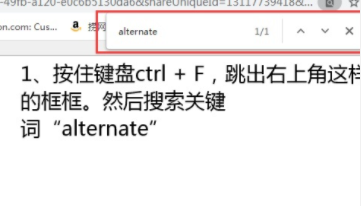 第三步:分小两步走,1、按住键盘上的ctrl + F,进入搜索框,然后再搜索框搜索关键词“alternate”;按一下键盘上的enter键,就会跳到带有“alternate”这一行“橙色部分”,然后我们再点进带有“alternate”这一行的链接。如下图-2所示: