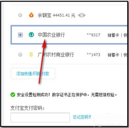 淘宝购物下单付款时,在选择付款方式这里点选银行卡付款;