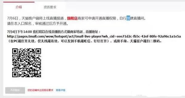 1、目前在只要你是天猫旗舰店商家即可申请开通直播权限。