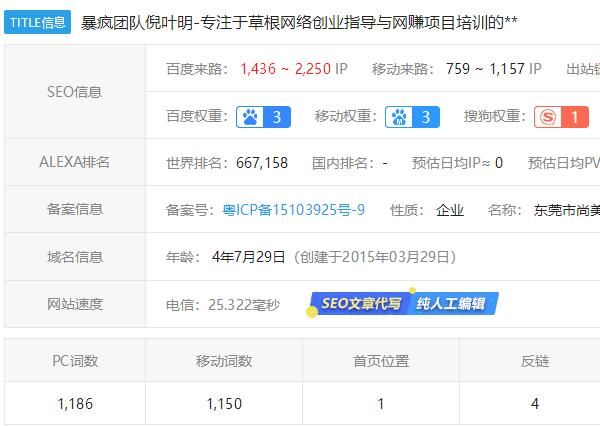 以下是原暴风团队网站的数据排名: