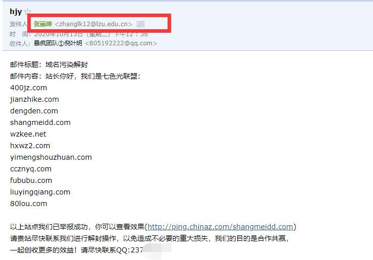 现在看来应该有一群人通过这种报道来盈利,因为暴疯的团队站长收到了一封电子邮件,那个人说很多网站已经报道,然后会列出,损失很大,如果你不想这样做,那么花钱消除灾难,可能就是这个意思。