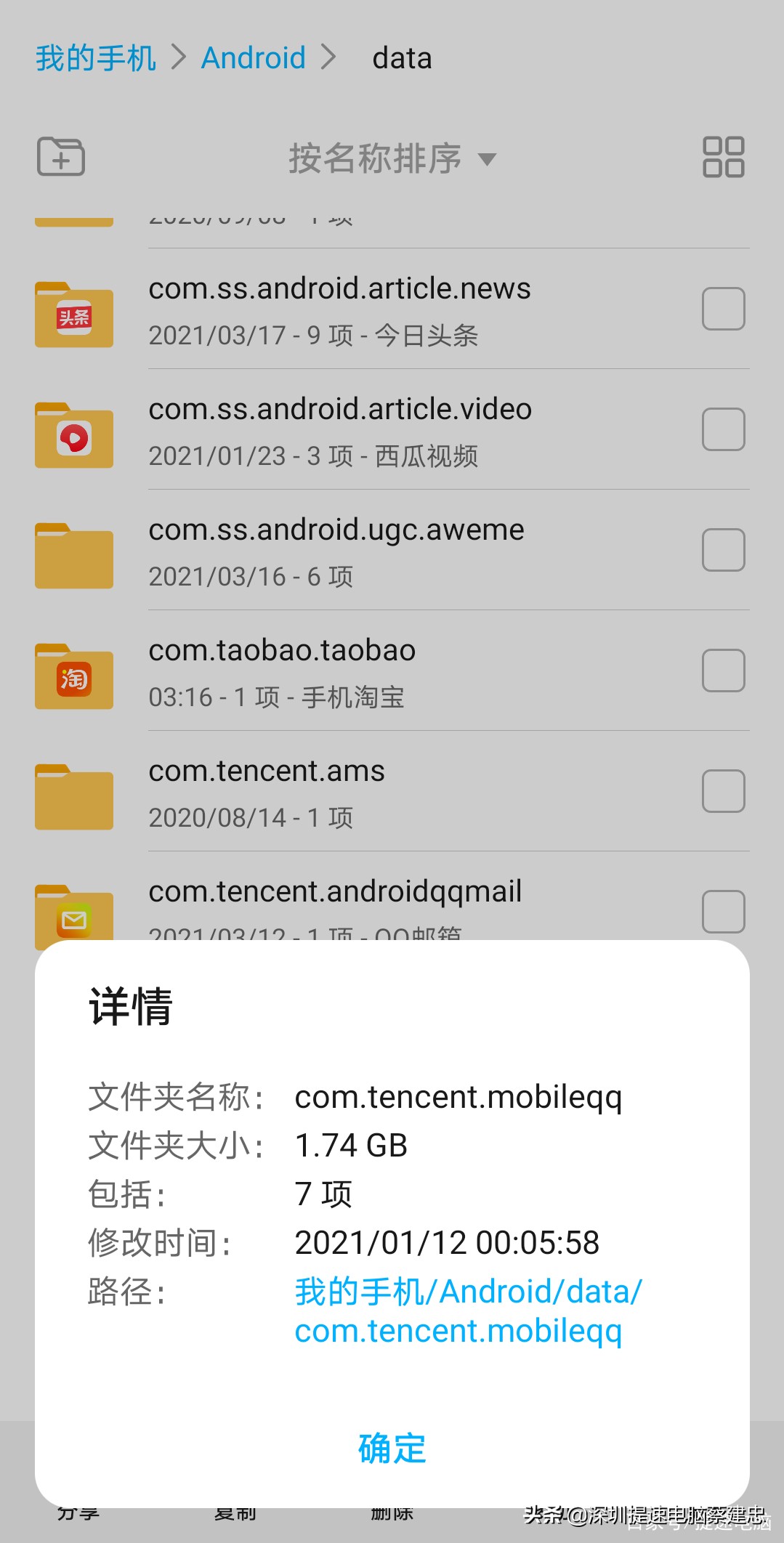 但是其卸载QQ后,com.tencent.mobileqq目录已经不存在了