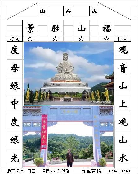 下联就要表达【观音】的部分,即【观音圣像】等佛教人文景观之灵,这样才合符观音山【灵秀胜境】的美誉。