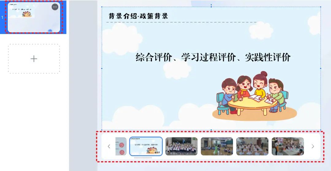 导入后,PPT的页面不是分散在左边的每一个场景中的,而是集中放在同一个场景中。